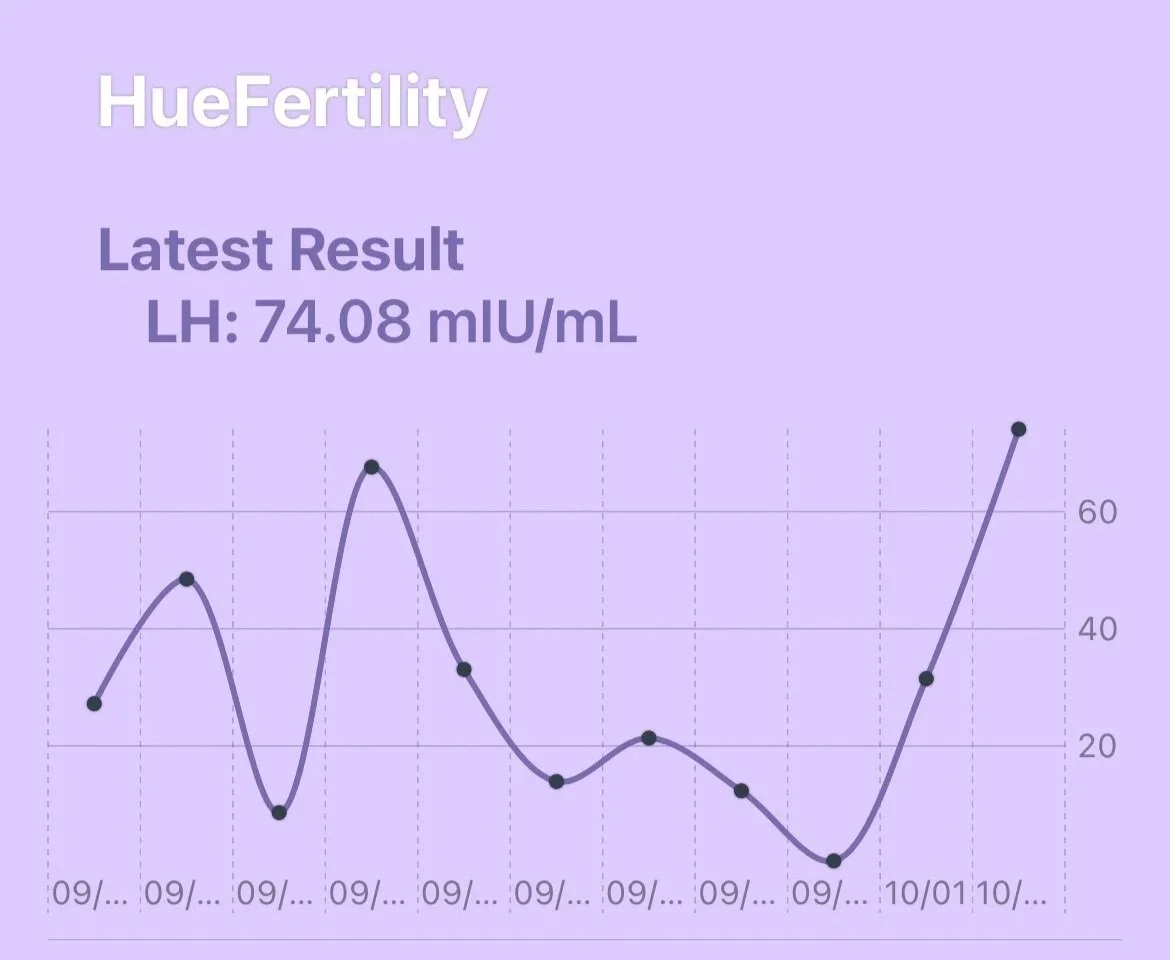 HueFertility changes that by giving you quantitative LH values through your phone, allowing you to actually see your hormone curve. This makes it easier to identify your real fertile window, confirm ovulation, understand your luteal timing, and recognize patterns that might warrant a closer look.